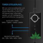 • Digitaler Controller mit vier Helligkeitsstufen, abschaltbarem Timer und UIS-Kompatibilität (für App-Steuerung und Integration ins Grow-System)