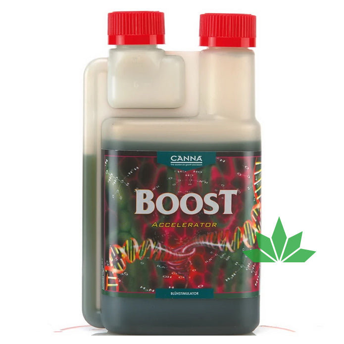 CANNA Boost ist ein wirkungsvoller Blühstimulator, der speziell für schnell wachsende Pflanzen entwickelt wurde. CANNA Boost regt die Bildung von Blüten zu Beginn der Blühphase an, wodurch die Blütenstände wesentlich voller als gewöhnlich werden. Durch die Verwendung von CANNA Boost werden die Pflanzen gesünder, stärker und weniger anfällig für Krankheiten und Schädlinge. CANNA Boost bürgt nicht nur für höhere Erträge, sondern besitzt auch stark geschmacksverbessernde Eigenschaften. CANNA Boost gewährleistet somit ein quantitativ wie qualitativ besseres Endprodukt!