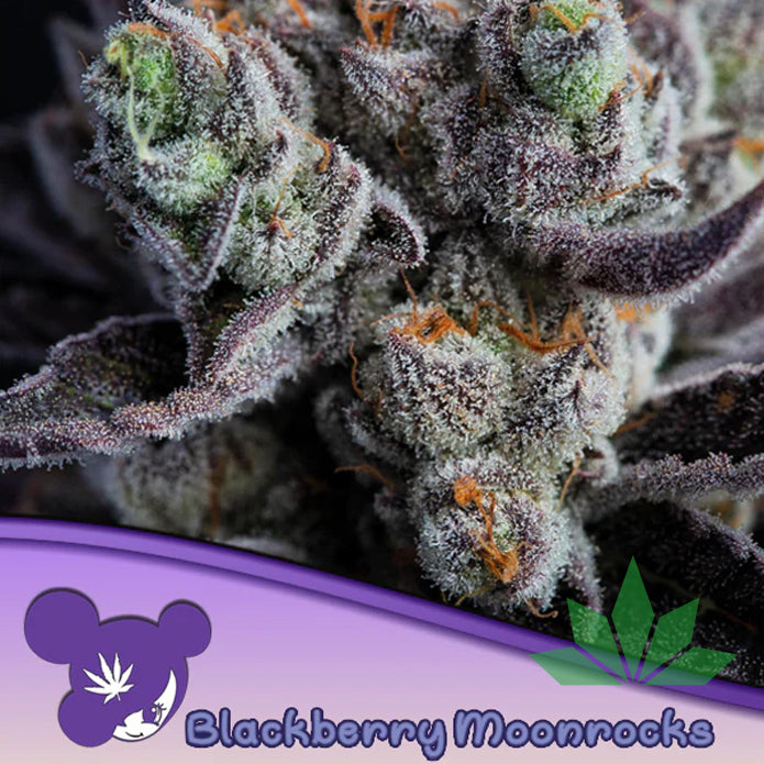 Blackberry Moonrocks ist eine bemerkenswerte Kreuzung von Blue Moonrock und Blackberry Kush. Diese Sorte ist bekannt für ihre starke Wirkung und ihr auffälliges Erscheinungsbild. Ihre Buds sind steinhart, mit Harz durchtränkt und schimmern oft in Blau- und Lilatönen, manchmal sogar in Schwarz. Die Sorte bietet ein angenehmes Raucherlebnis mit Aromen von Lavendel, Blaubeeren und einem Hauch Zitrusfrüchte. Der THC-Gehalt liegt bei beeindruckenden 33%, was Blackberry Moonrocks zu einer der stärksten Sorten auf dem Markt macht. Sie erzeugt eine entspannende, aber auch stimmungsaufhellende Wirkung, die durch die hohe Potenz verstärkt wird. Diese Sorte ist sowohl für den Innen- als auch den Außenanbau geeignet. Sie ist schimmelresistent und pflegeleicht, was sie auch für unerfahrene Züchter attraktiv macht. Mit einer Blütezeit von 8-9 Wochen kann sie Erträge von bis zu 550 g/m² im Innenbereich und bis zu 700 g pro Pflanze im Freien erzielen. Die Pflanze erreicht eine moderate Höhe von 110-130 cm und entfaltet ihr volles Potenzial besonders in trockenen Klimazonen.Daten im Überblick