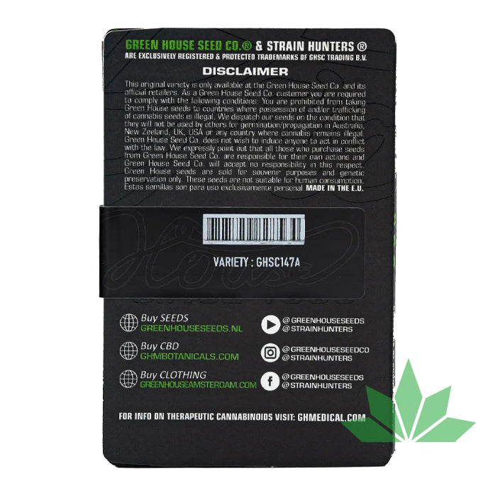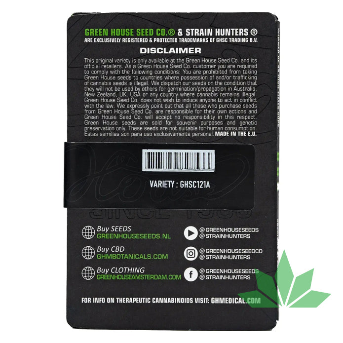 Die Green House Seed Company ist ein renommiertes Unternehmen im Cannabis-Sektor, das sich auf die Züchtung und den Verkauf von Cannabis-Samen spezialisiert hat. Ihre Samen sind frei von genetischen Modifikationen und fungiziden Behandlungen. Das Unternehmen ist bekannt für seine zahlreichen internationalen Auszeichnungen und eine breite Palette an Cannabis-Genetiken.