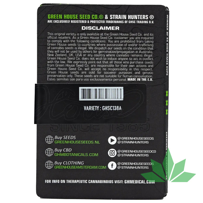 Weitere Informationen sind auf der Website www.greenhouseseeds.nl zu finden!