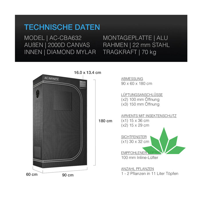 CLOUDLAB 632, Advance Grow Zelt 90x60x180
