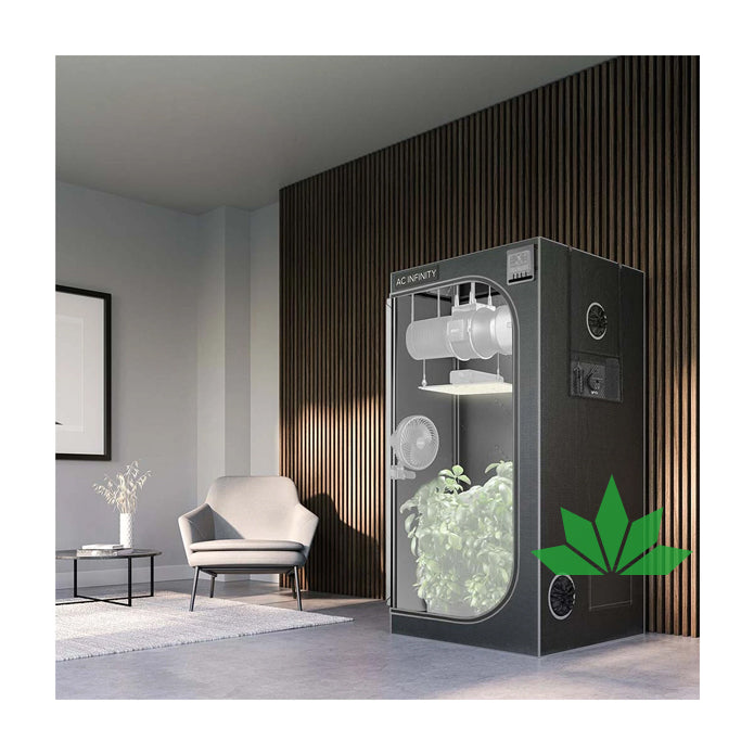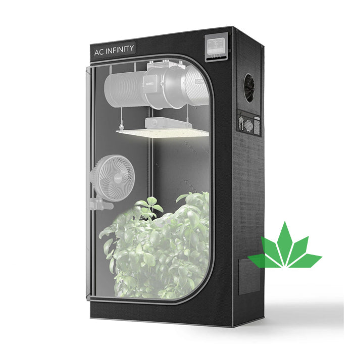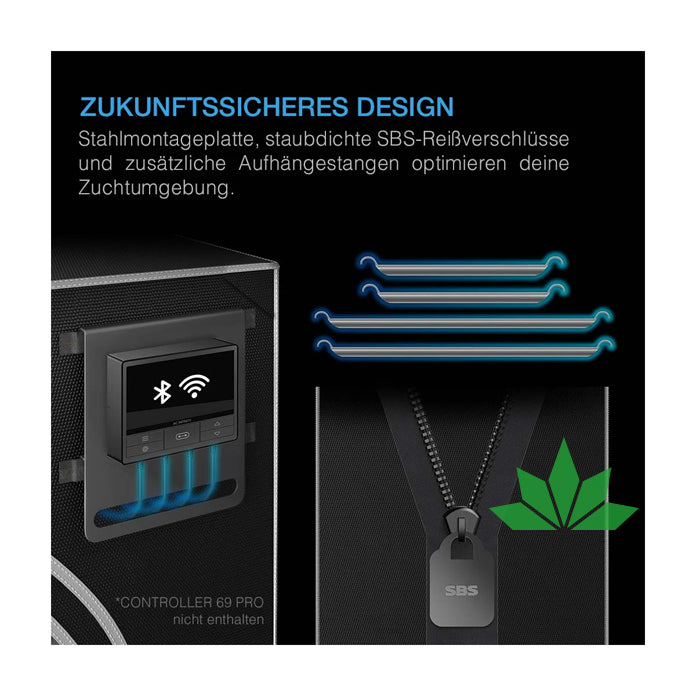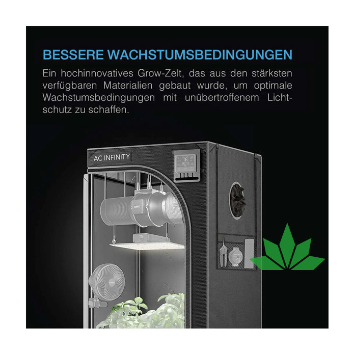 Die CLOUDLAB-Serie ermöglicht es dir, das ganze Jahr über deine gewünschten Pflanzen anzubauen und wurde speziell für den Gartenbau in Innenräumen entwickelt. Du kannst sie in jedem beliebigen Raum in deinem Zuhause aufstellen, z. B. in deinem Kleiderschrank, Keller, Gästezimmer oder in der Garage. Mit der praktischen, abnehmbaren Werkzeugtasche kannst du dein Zubehör innerhalb oder außerhalb des Zeltes verstauen. Wenn du das Belüftungsgitter öffnest oder den Bodenkanal mit einem Ventilator kombinierst, gelangt frische Luft in das Zelt. Wenn du die Fensterklappe zurückziehst, kannst du den Fortschritt der Anzucht verfolgen und gleichzeitig das Klima im Inneren des Zeltes bewahren.