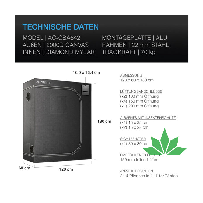 CLOUDLAB 642, Advance Grow Zelt 120x60x180