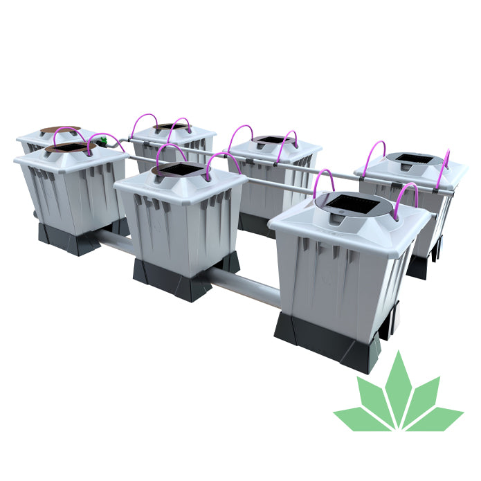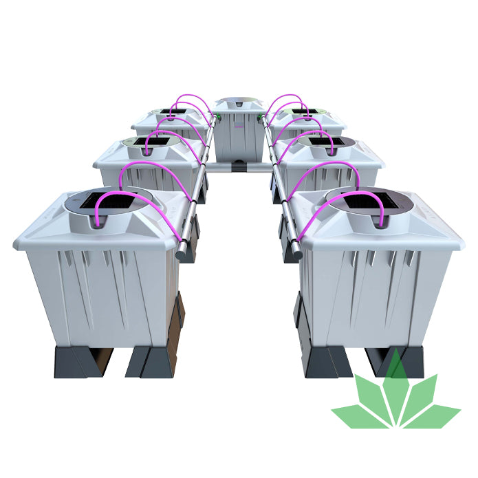 Ein professionelles Aeroponik-System mit sechs 15 Liter‑Töpfen – ideal für maximales Wurzelvolumen und effizientesten Nährstoff‑ und Wasserverbrauch.
