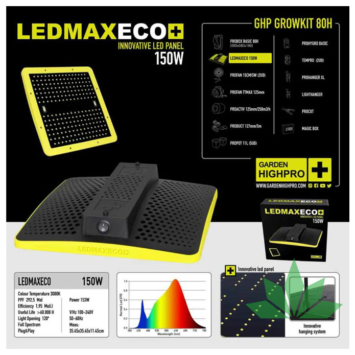 LEDMAXECO 150 W LED-Beleuchtung: Bietet effizientes Licht mit geringem Energieverbrauch und imitiert das Spektrum der Sonne für optimale Photosynthese ohne die übermäßige Hitze herkömmlicher Glühbirnen. 1 Einheit.