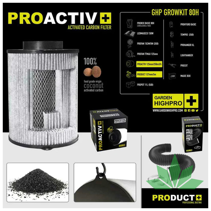 PROACTIV-Filter mit einer Kapazität von 250 m³/h, entfernt Gerüche und reinigt die Luft und schafft so eine frische und saubere Umgebung für Ihre Pflanzen. 1 Einheit.