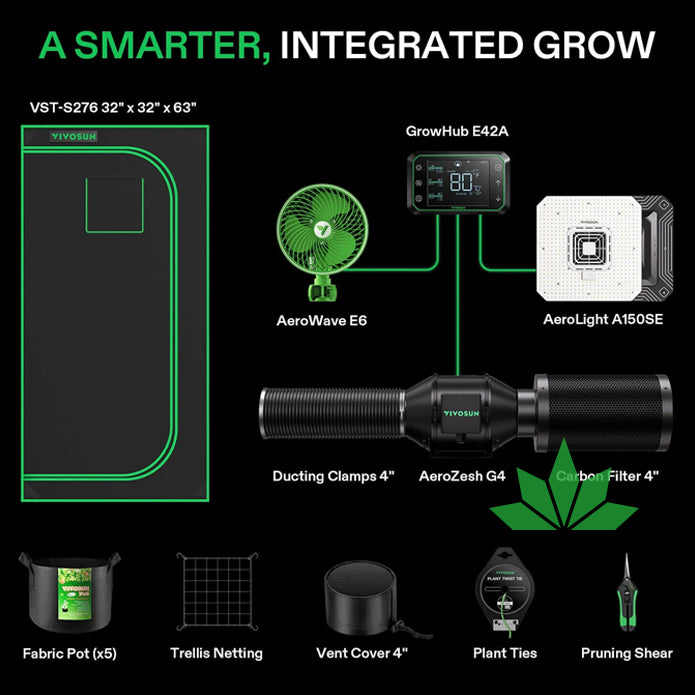 - Zubehör: Das Zubehörpaket enthält alles, was du zum Anbauen benötigst, einschließlich ausreichend Stofftöpfen, Ranknetz, Pflanzenbinder und VIVOSUN-Scheren zum Trimmen.
