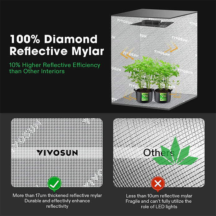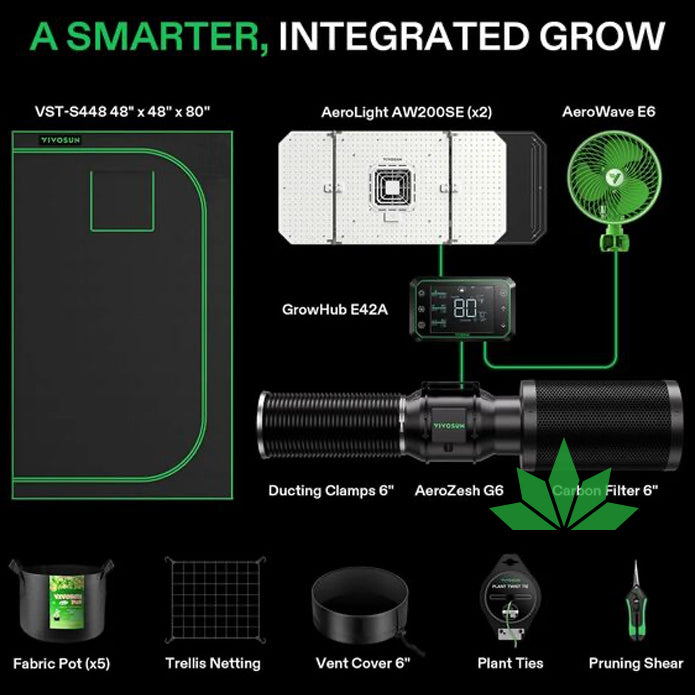- Zubehör: Das Zubehörpaket enthält alles, was du zum Anbauen benötigst, einschließlich ausreichend Stofftöpfen, Ranknetz, Pflanzenbinder und VIVOSUN-Scheren zum Trimmen.