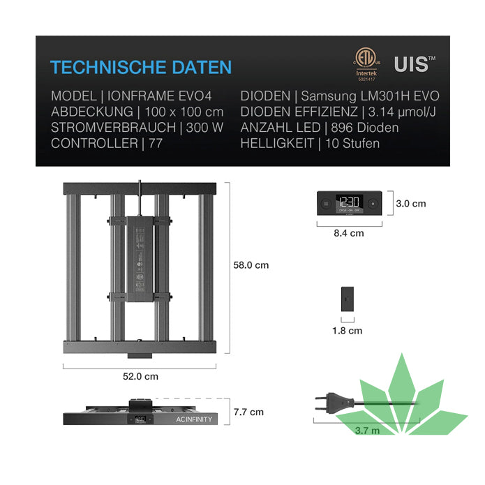 IONFRAME EVO4, Samsung LM301H EVO LED Grow Light, 300 W, 90 (100) x 90 (100) cm