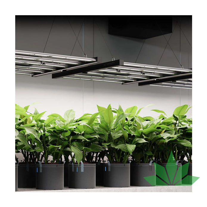 Eine Indoor-Pflanzenleuchte, die für Grow-Zelte und große Grow-Räume entwickelt wurde, um die Wachstumsrate und den Ertrag deiner Pflanzen zu verbessern. Verwendet Samsung LM301H EVO Dioden, die algorithmisch auf einem stabförmigen Formfaktor angeordnet sind, um die Lichtabdeckung gleichmäßig zu verteilen und Hotspots zu minimieren. Das modulare Design ermöglicht es dir, den Treiber zu entfernen, um ihn entfernt von der Leuchte zu montieren und die Wärmeableitung zu optimieren. Diese Wärmeableitung wird durch die Stahl- und Aluminiumkonstruktion unterstützt, die eine magnetische Befestigung ermöglicht und nach IP-65 zertifiziert ist, um feuchten Umgebungen standzuhalten. Dieses Grow Light erfüllt die ETL-Normen (Zertifikat Nr. 5021417) für die Sicherheit von Elektrogeräten und gewährleistet so einen sicheren Einsatz in Beleuchtungsanwendungen. Der mitgelieferte Smart Controller ermöglicht die Programmierung von Zeitplänen und unterstützt die Verkettung mehrerer LED Grow Lights in einer linearen Anordnung mit Hilfe von Splitter-Dongles (separat erhältlich). Dieses Produkt ist Teil der UIS™-Plattform von Anbaugeräten und intelligenten Controllern, die so konzipiert sind, dass sie miteinander integriert werden können, um deine ideale Umgebung zu schaffen.