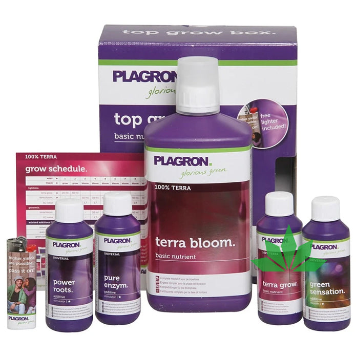 Die Top Grow Box 100% TERRA ist das ideale Kit für alle Indoor-Grower, die auf Flexibilität und Benutzerfreundlichkeit Wert legen. Mit der mineralischen - und direkt aufnehmbaren - Pflanzennahrung Terra Grow und Terra Bloom machst du es dir und deinen Pflanzen viel einfacher. Es wird zum Kinderspiel, deinen Fütterungsplan an die Bedürfnisse deiner Lieblingspflanzen anzupassen und sie genau in die Richtung zu lenken, die zu einem großen Ertrag führt. Mit Plagron bist du der Chef in deiner Growbox. Und mach dir keine Sorgen über einen zusätzlichen Besuch in deinem Growshop: Die Top Grow Box 100% TERRA enthält genug Produkte für einen kompletten Anbauzyklus auf 1 m². Leg los und mach dich auf den Weg zu einer üppigen Ernte!