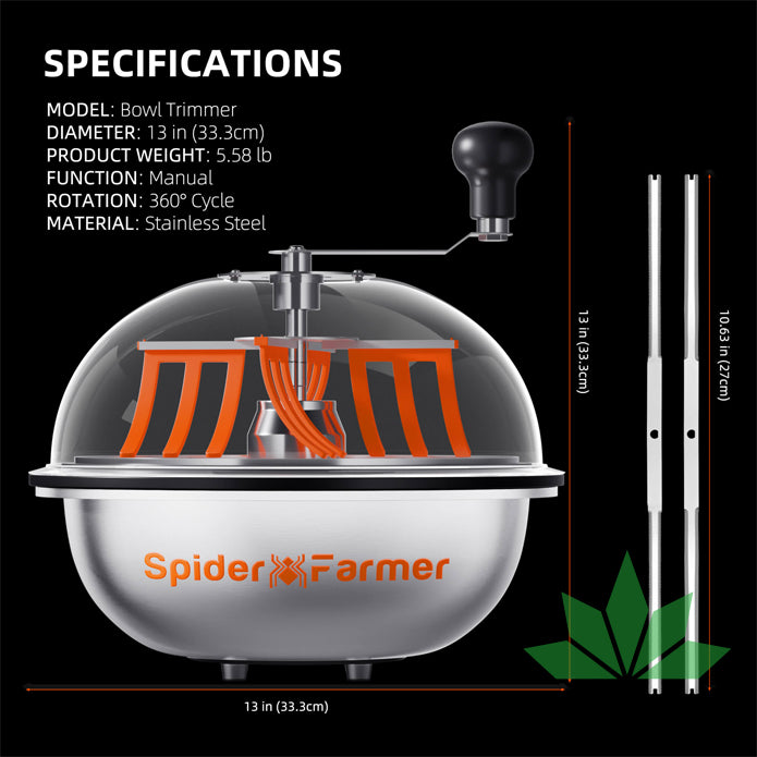 Spider Farmer 13” (Ø 33 cm) Bud Leaf Bowl Trimmer,Twist Spin Cut with Clear Visibility Dome