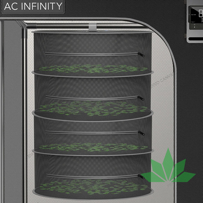 - 4 Ebenen | 45 cm Durchmesser | Passend für 60x60 cm oder größere Grow-Zelte | Inklusive Aufhängehaken und Tragetasche