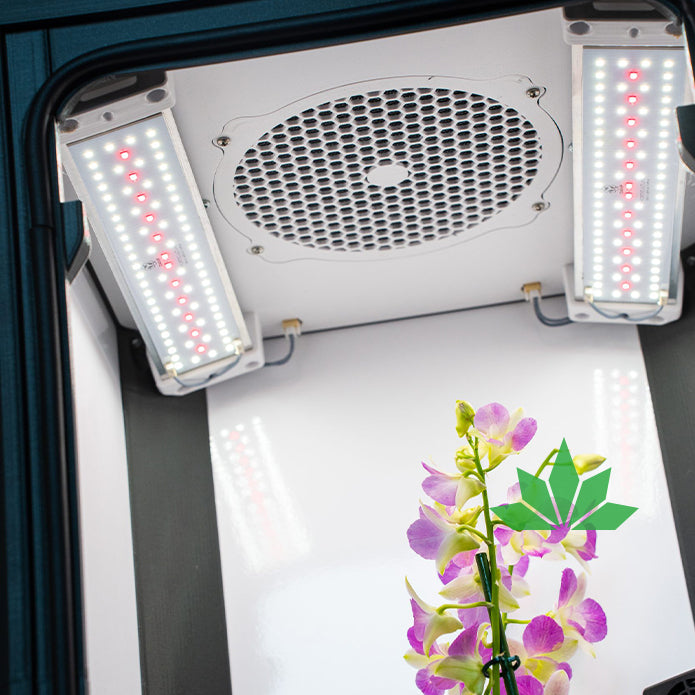 - Die von uns konzipierte und produzierte LED- Beleuchtung leistet mit 60W auf die Grundfläche der Growbox unglaubliche 1300PPFD. Die Lichtintensität ist zusätzlich steuerbar. Durch die eingebaute Sonnenauf- und Untergangsfunktion fahren die Lichter langsam hoch, sodass sich deine Pflanzen wie in der Natur fühlen.