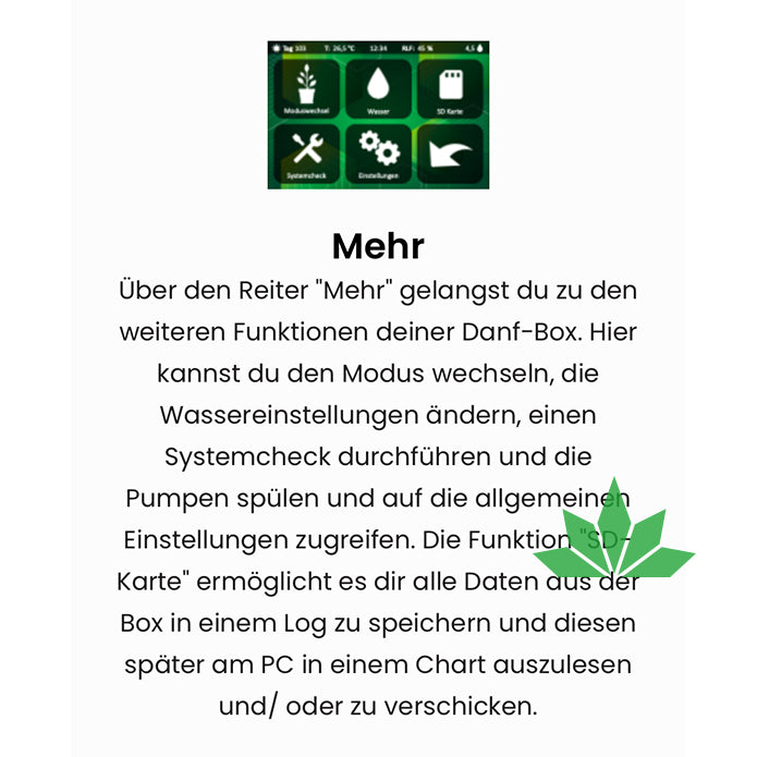 - Über eine SD-Karte kannst du deinen Grow dokumentieren, auslesen und falls gewünscht auch teilen.
