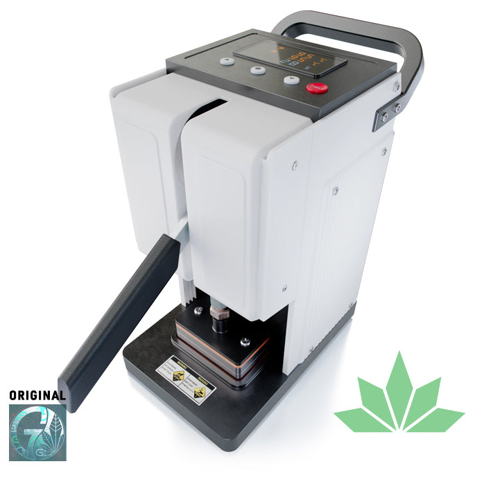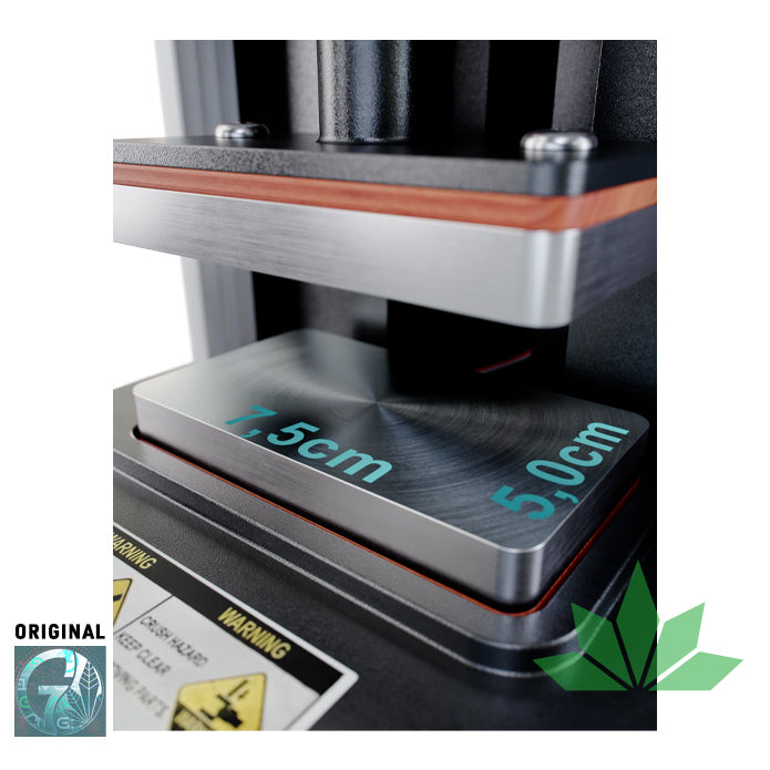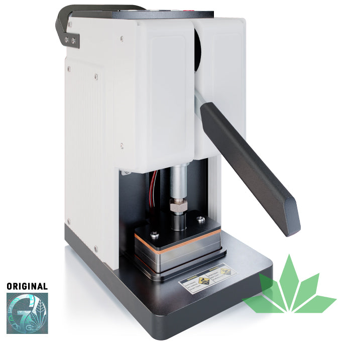 Die GP2 zeichnet sich durch ihre 7,5 cm x 5 cm großen Platten aus, die unabhängig voneinander bis zu einem Druck von 700 kg beheizt werden können. Mit diesem neuen System könnt ihr die obere Platte heißer als die untere einstellen, was neue Möglichkeiten in der Extraktion bietet.