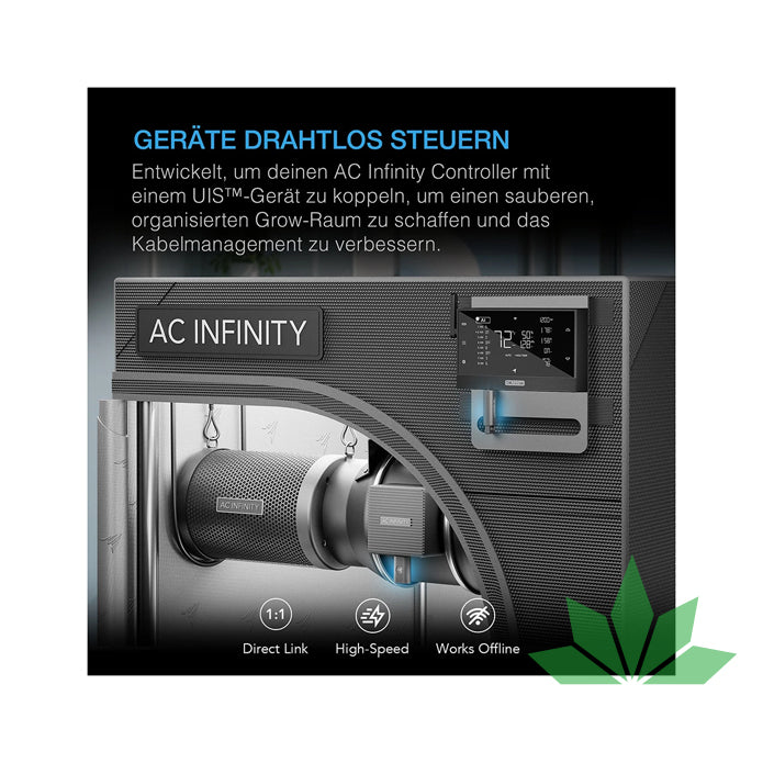 - Verbindet AC Infinity Controller drahtlos mit UIS-Lüftern, Lampen und Smart-Geräten für organisierte, kabellose Grow-Setups.